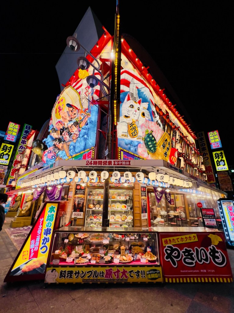 As I walked, I noticed the revolving sushi outside Kura Sushi; it was such an impressive sight, and it made me smile. There’s something so fascinating about seeing food moving like that, and in a place so full of life, it felt like a small slice of Osaka’s vibrant soul.