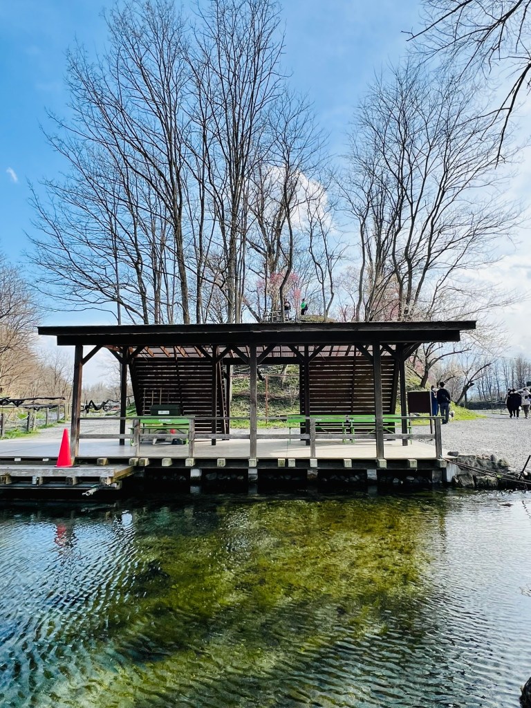 I arrived around noon, greeted by the calming sounds of flowing stream water. Spring was just starting to show its colors, and the farm felt like the perfect escape from the hustle and bustle. As I entered, my eyes were immediately drawn to a shop selling wasabi soft-serve ice cream. There were a few options, but the one that caught my eye was the Wasabi Soft-Serve with a touch of gold leaf. It was too tempting to resist, even though it was a little more expensive than the others. I was excited. I mean, who wouldn’t be, right? A bit of gold on wasabi ice cream? How could I not give it a try?
